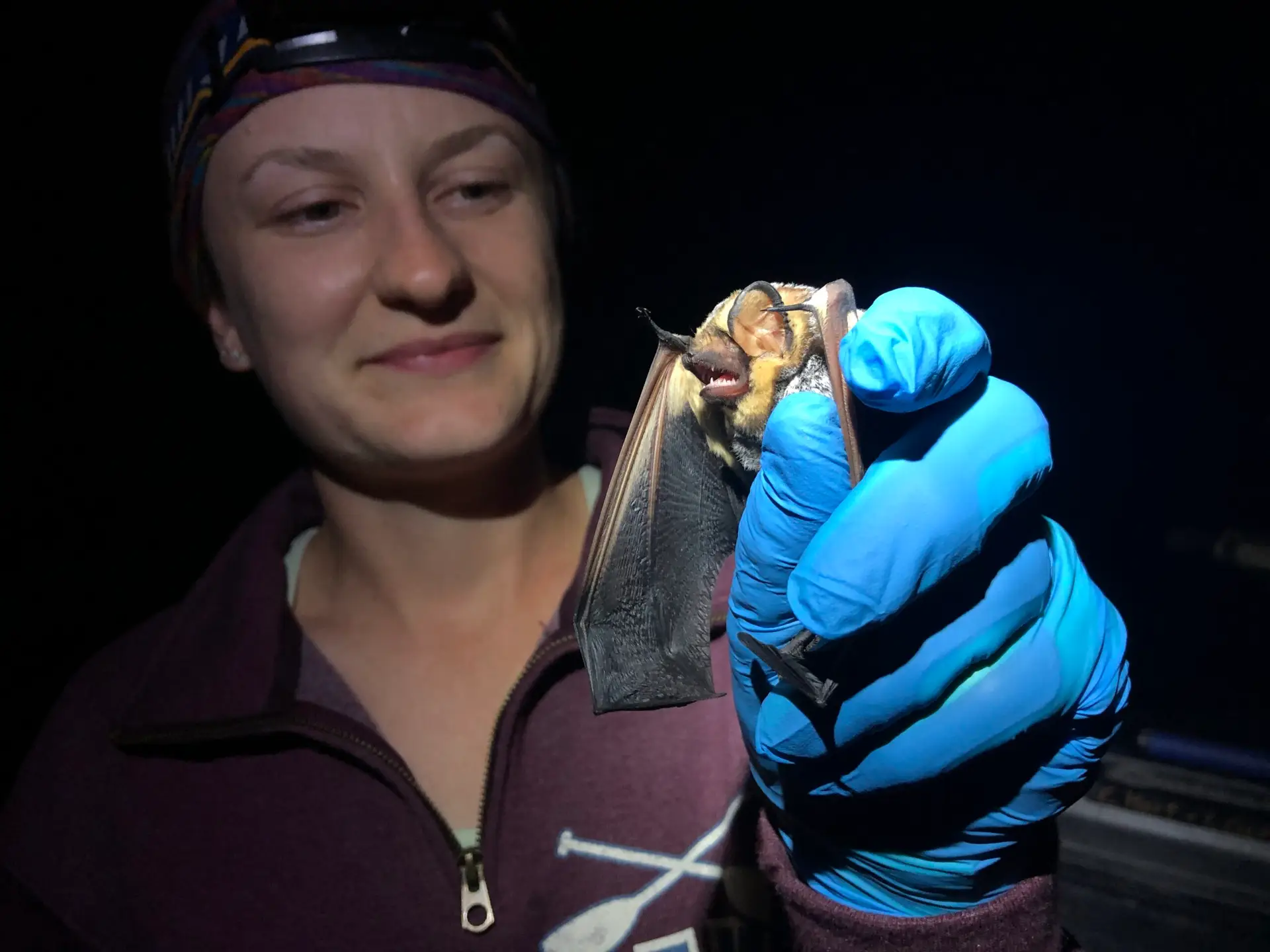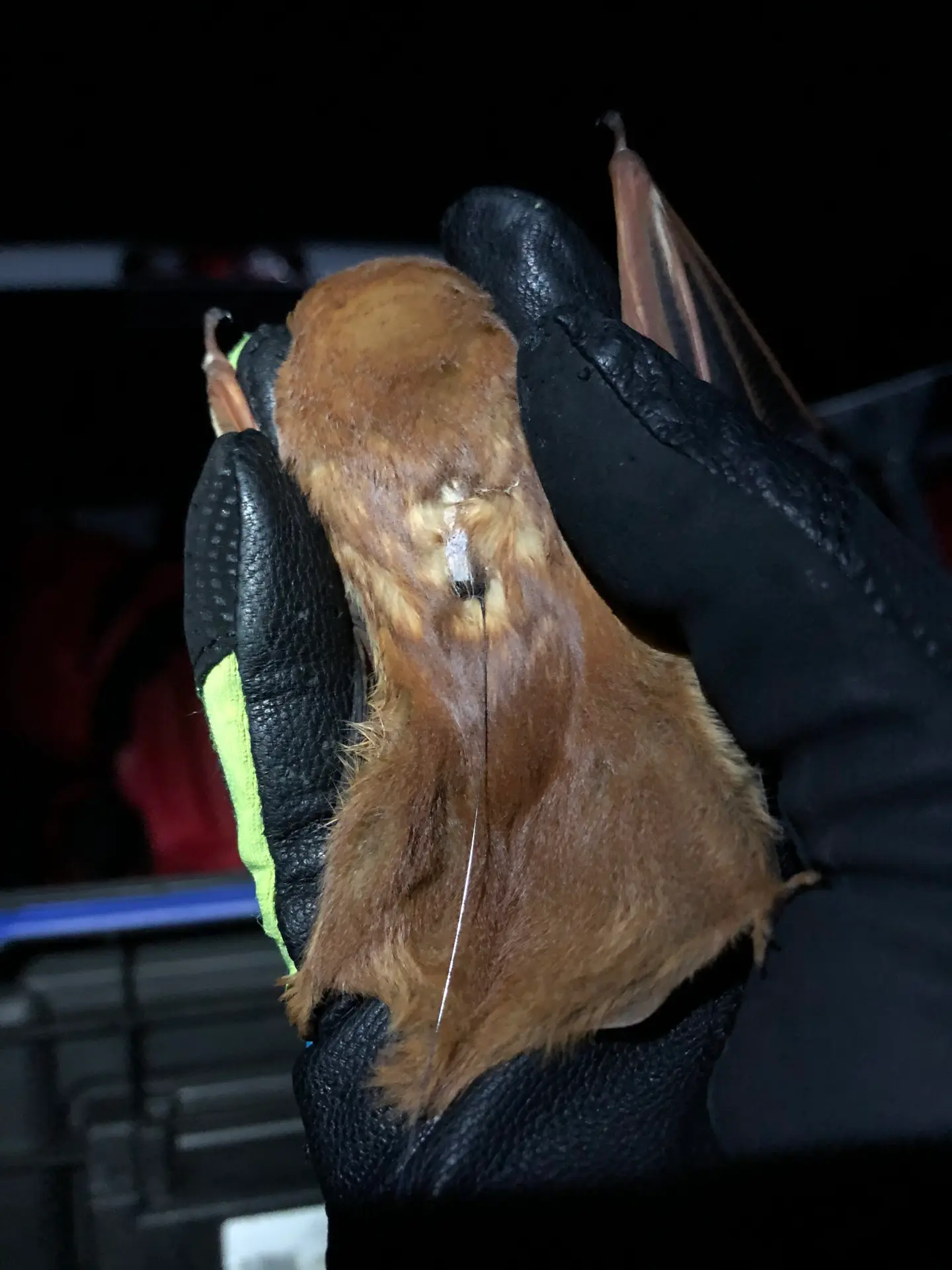 A favorite WEST project is capturing and conducting foraging telemetry on migratory bat species such as the eastern red bat and hoary bat. This is to learn more about foraging behaviors and movement patterns throughout the night.