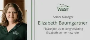 WEST Promotion Congratulations Elizabeth Baumgartner (Libby)! Libby is excited to support the Bismarck Team as their Senior Manager, where her extensive knowledge of WEST staff, culture, processes, Read More ยป June 27, 2023