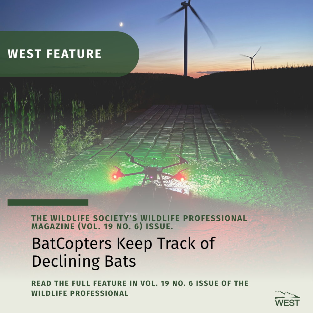 We are proud to see WEST Senior Biologist and Drone Program Lead, Michael Gerringer, featured in The Wildlife Professional’s November/December 2025 issue, for WEST’s work developing drone-based monitoring methods to help track declining bat populations, using the BatCopter.