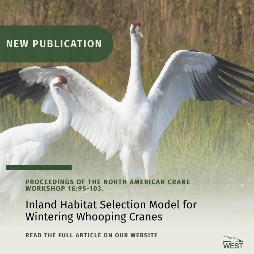 WEST biologists and statisticians, Karen Tyrell, Kristin Brightwell, Rosa Palmer, Matthew Crane, and Ted Owen are co-authors on the recently published research article, “Inland Habitat Selection Model for Wintering Whooping Cranes”, in the Proceedings of the North American Crane Workshop.